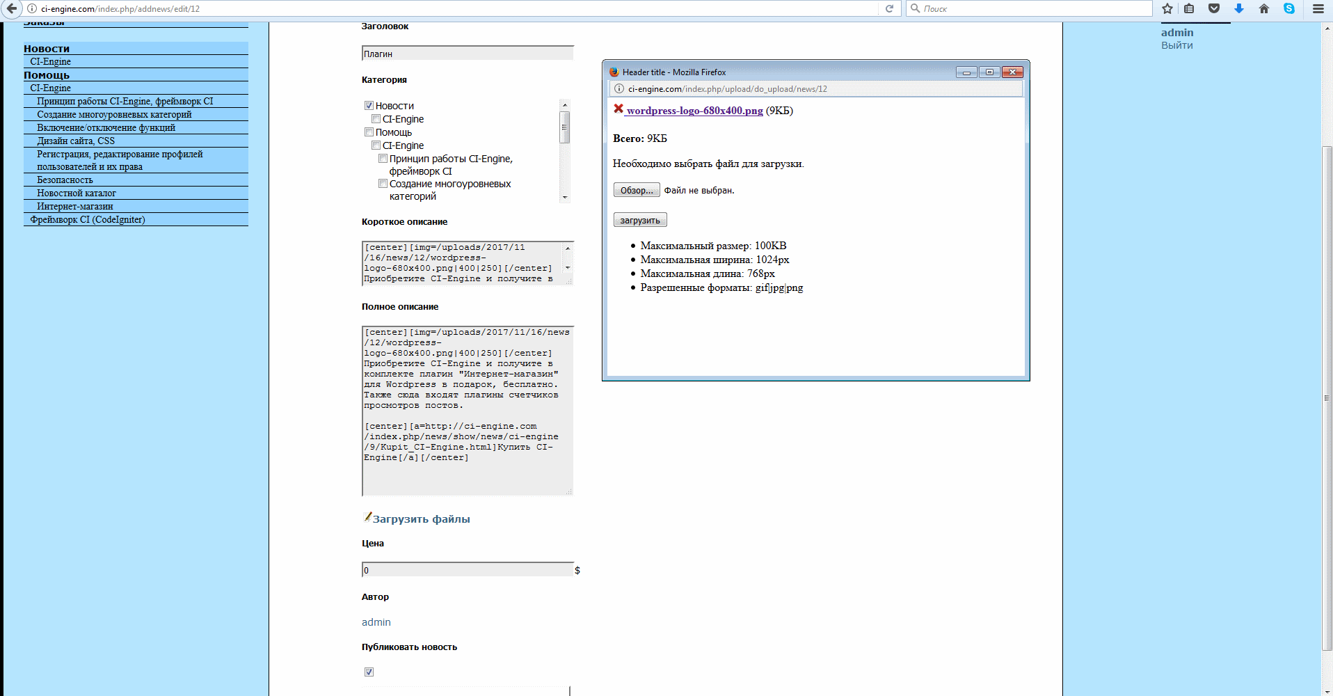 Данный движок для создания сайтов выполнен на фреймворке CodeIgniter. Содержит все необходимые функции для новостного сайта и интернет-магазина. Заменит любую CMS.